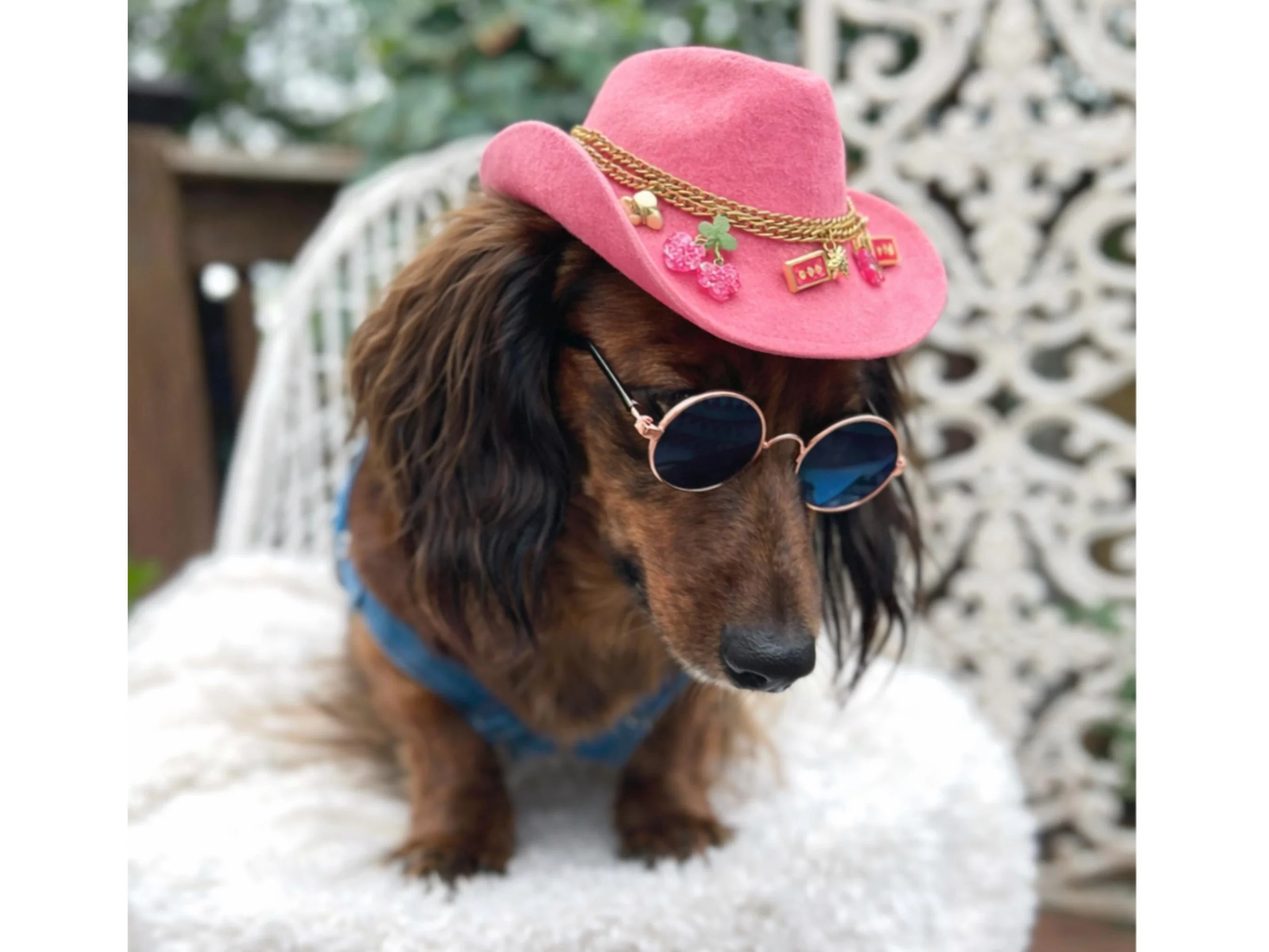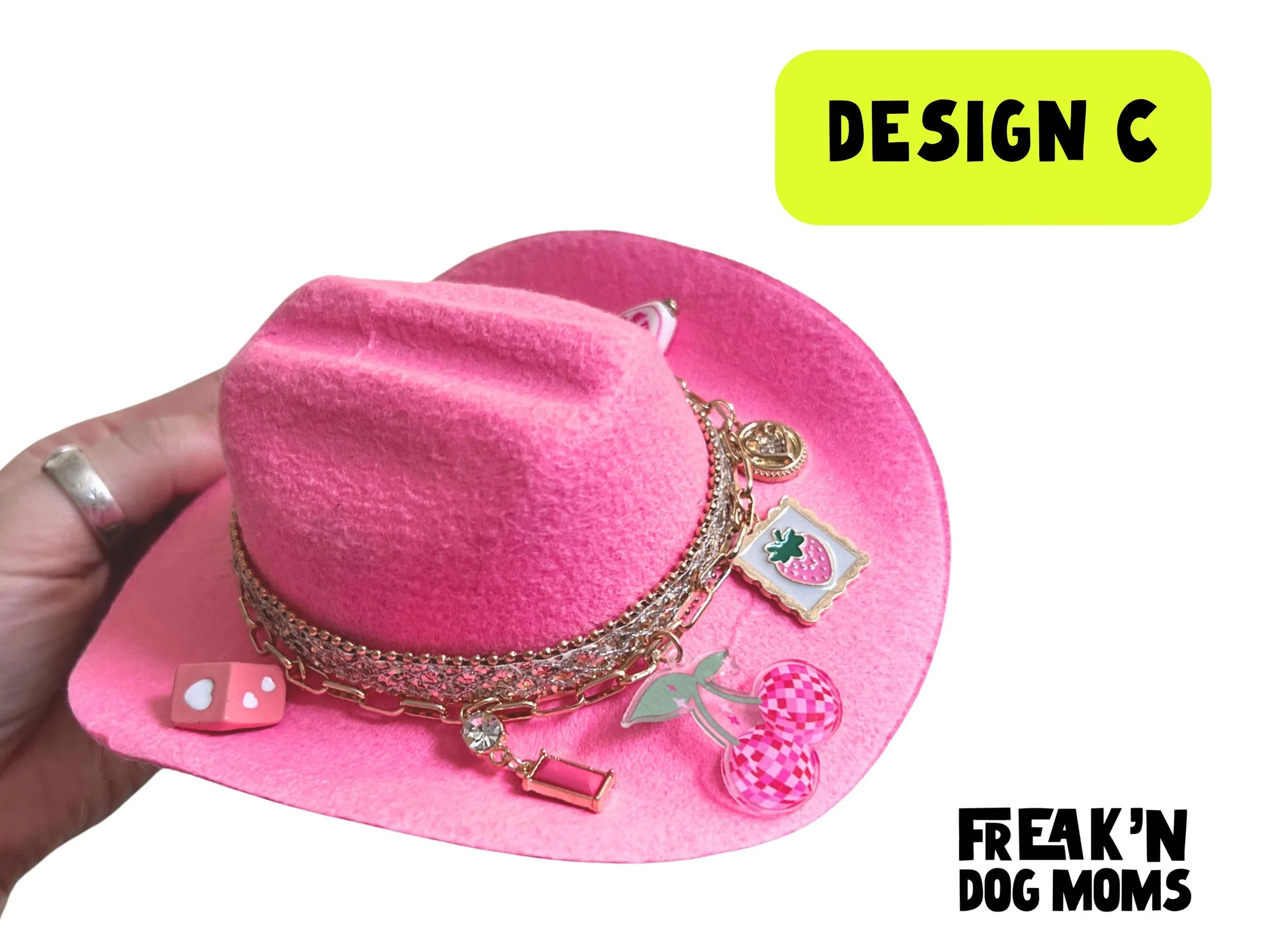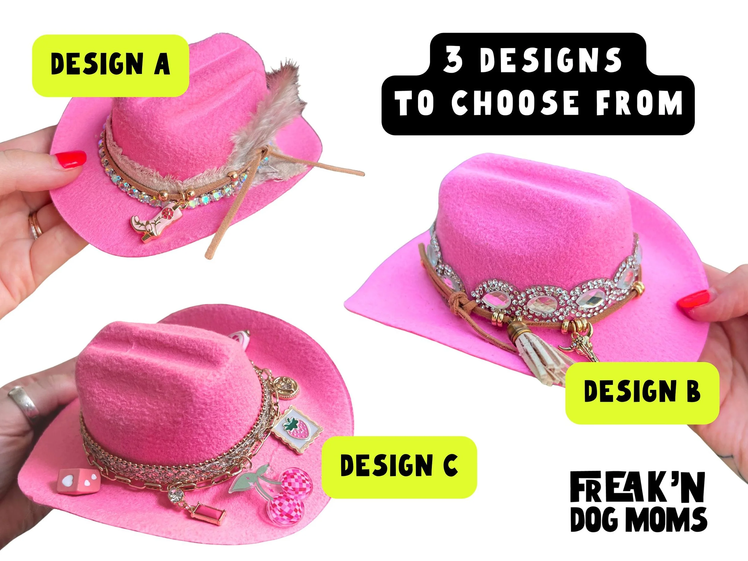 Perfect for pets who don't do basic. Our handmade pink rhinestone cowboy hat comes in small and large (2 different designs) for dogs (and cats!) of all sizes. Customize by selecting charm and tassel!